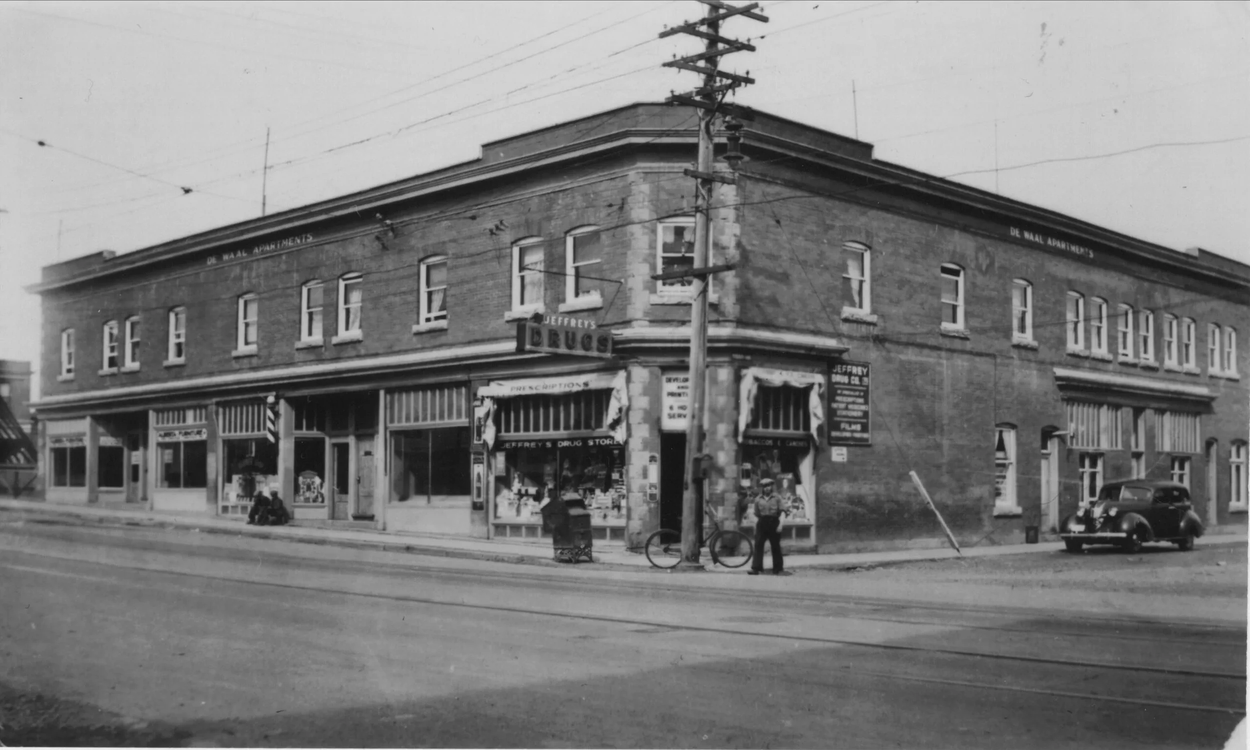 The brick and sandstone block was cleverly built along the rising streetscape of Edmonton Trail in 1910, by Henry Poffenroth a German from Russia immigrant. The 2 storey Edwardian Commercial block had seven storefronts on the main level and eight 2 bedroom apartments upstairs. Two years after completing the block, Poffenroth exchanged it for a farm in DeWinton with Lyndsay Elliott. The major downturn of 1914 resulted in tough times in Calgary and when Elliot passed away in 1920, the Block came under the ownership of Canada Life Assurance. Around that time Theo deWaal, a recent Dutch immigrant, became the custodian. He and his family of four lived on site in a separate two bedroom, 2 storey apartment. He started to put money away in order to purchase the building, probably costing about $20,000.
