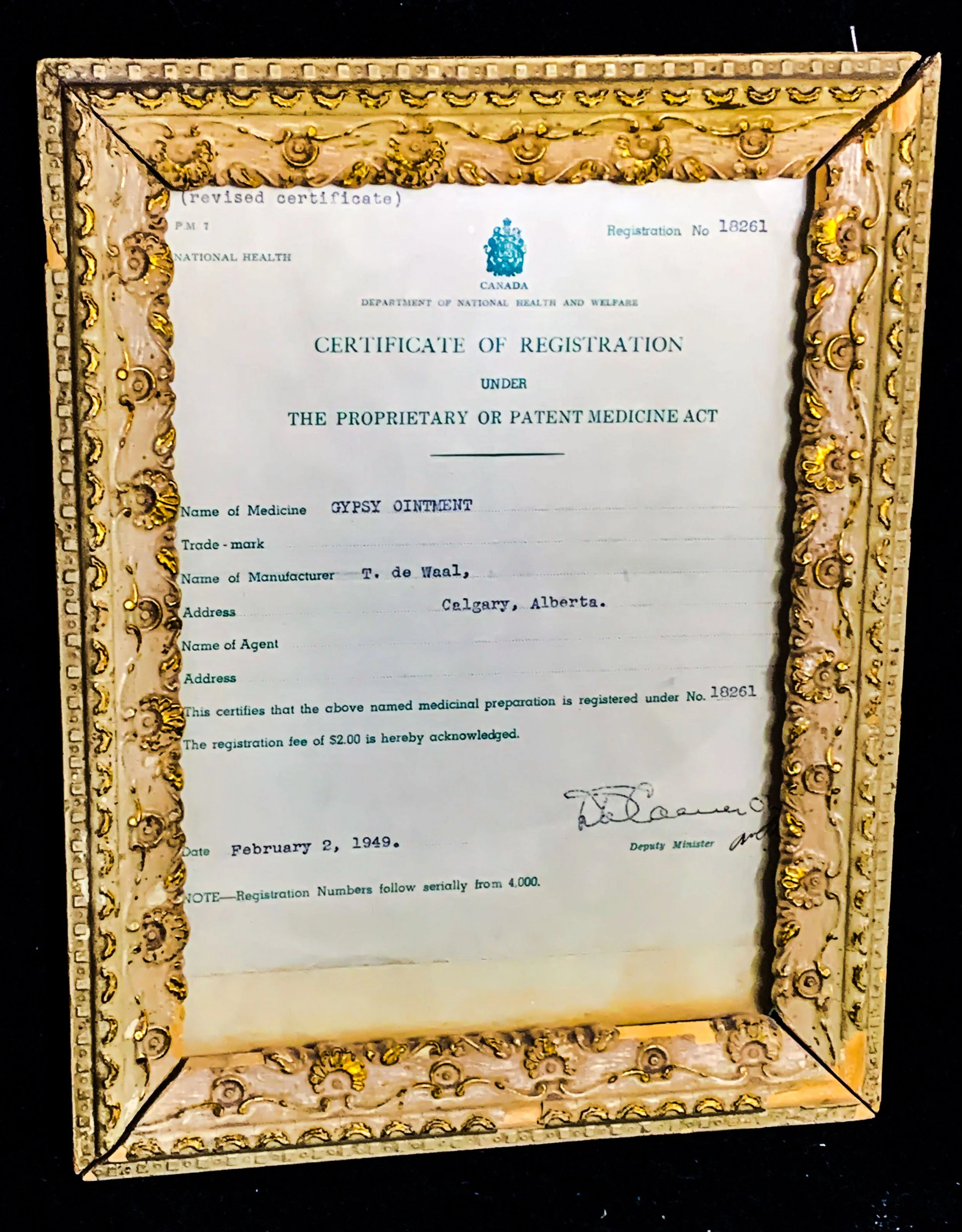 Some interesting tidbits: as a sideline Theo deWaal made and sold a special highly sought after liniment called Gypsy Ointment. After the heating was converted to gas, the original coal room in the basement was converted to an air raid shelter. Music has been a common theme here, with 2nd generation Ted and his son John, both drummers involved in the local music scene. A music studio, operated by John deWaal, for 40 years was in the basement until 2019.